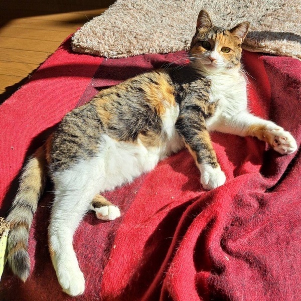 | 里親募集する理由 | 今まで見たことがないとても馴れた三毛猫が現れ、耳カットもなかったため、一般の方が手術をしてくださろうとして保護をして病院に行ったところ、妊娠後期だと判明。 知り合いのボランティアさん経由でご相談が来ました。人馴れしていること&もういつ生まれてもおかしくないということで保護をして出産してもらうことになりました。 |