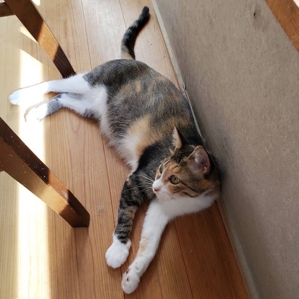 | 特徴(性格など) | とにかく母性が強く、子育ては完璧にこなし、自分の子ではない子にも授乳させていました。隣の保護部屋で子猫が鳴いていると、のぼれんにゃん(脱走防止柵)に体当たりをして破壊し(笑)すっ飛んで様子を見に行ったりしていました。 つーちゃんの子供2匹も新しいおうちに迎えられ、避妊手術をしてからは、前のように子猫に気を取られなくなり、自分の時間をのんびり過ごすことが出来るようになりました。 熟女ですが(笑)子猫のようによく遊び、よく食べ、よく寝ます。天真爛漫でマイペース。 人が遊んであげるときはもちろん、一人でおもちゃで遊んだり、子猫のように何かを獲物に見立てて狙ったり。いつも楽しそうです。健康上も今のところ何の問題もありません。 人間に対しても、誰にでもフレンドリー。来客が多いおうちでも大丈夫そうです。 最近寒くなってきたせいか、お膝にもよく乗ってくれます。 保護時は2㎏もないほどやせていて、まさか妊娠しているとはわからなかったようです。 今までどんな猫生を送ってきたかわかりませんが、これからは子育てからも解放され、つーちゃんだけを可愛がってくれるおうちにお迎えしてもらえたらと願っております。 また、お外経験も長かったですし、こう見えてもかなり機敏に動くので(笑)脱走対策はしっかりお願いしたいと思っています。 対策等でわからないことは アドバイスさせていただきますので、疑問点などは遠慮なく聞いていただきたいです。 ご自宅の玄関や開ける窓、ケージを置くお部屋などのお写真をご持参いただきますと、より具体的なお話ができると思います。 ▼保護主Instagram▼ https://www.instagram.com/kojikoro1325/ |
