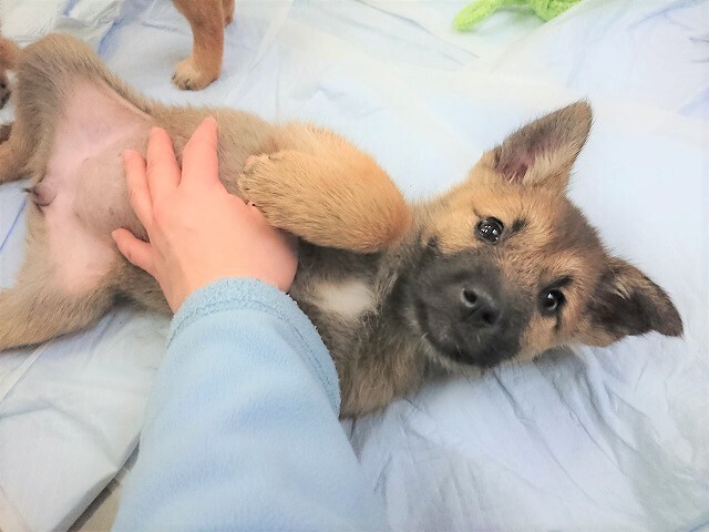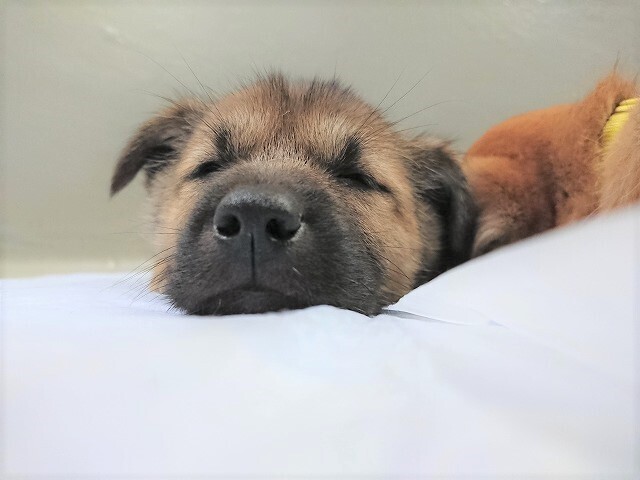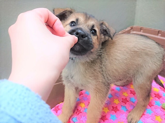 | 特徴(性格など) | 仮名:ふね 性別:♀ 犬種:Mix 体重:4kg 毛色:黒茶(グレーがかっている) ウルフのような、グレーがかった毛色が素敵な女の子♪ 毛が長めなので、将来どんな姿になるのか楽しみな子です。 甘えん坊さんで、食べることも大好きです(*^^*) 山の中にいるところを保護された野犬の赤ちゃんですが とても人に慣れており、尻尾を振ってこちらへ寄って来てくれます。 中型犬の子犬のため、成犬時の予想は15㎏前後です。 |
