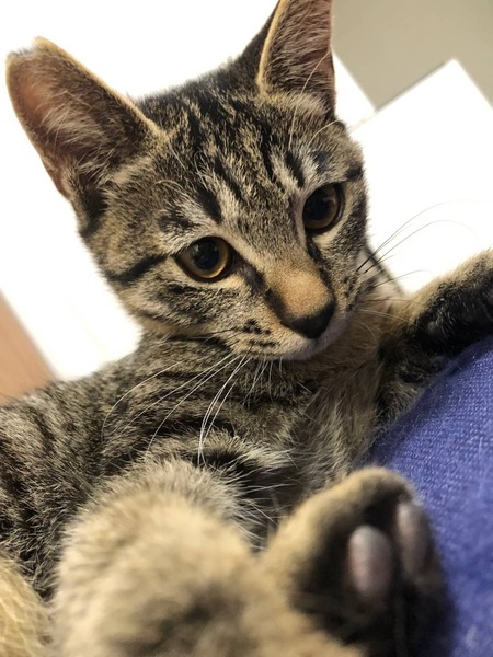 | 特徴(性格など) | 濃いめのキジトラちゃんです(*´˘`*)♡ とにかく元気な活発ガール!! ジャンプ力に自信あり!! 眠たくなるとそばに来て甘えてねんねします♪̊̈♪̆̈ 少々 気の強いところもありますがねこ同士でも仲良く遊びます。 まだまだ遊び盛りなので一緒に遊んでいただける方お待ちしております( ´艸`) |
