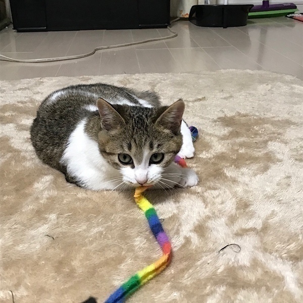 | 特徴(性格など) | なでなでされるとすぐにゴロゴロ言っちゃうチーコちゃん。 最近では朝からゴロゴロ全開で起こしに来てくれて、なんとも幸せな気持ちでスタートが切れます? 甘える時に短い尻尾をピーンと立ててくれるのも愛しい❤️ 生まれてからずっと猫に囲まれて生きてきた為、猫との付き合い方が上手です。 お兄ちゃんであるアンくんかタタくんどちらかと一緒に、もしくは先住ちゃんがいるお宅お希望しています。 おもちゃで遊ぶことが大好きなので、たくさん遊んでくれるおうちが望ましいです! ※追記※ 歯の生え替わり時期によるものか、最近コード噛み行動が出てきました。 お迎えいただくおうちにはコードへの対策もお願いしております。 具体的な方法が分からない方は会場で保護主までご質問ください。 |