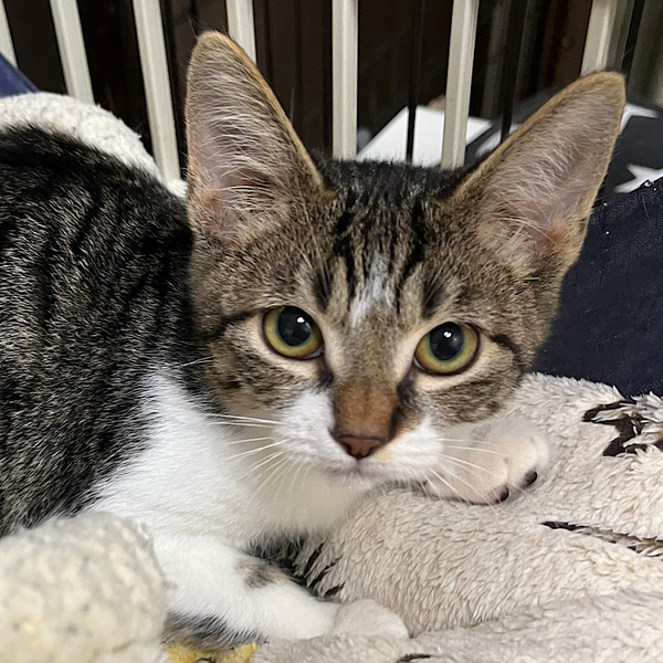 | 特徴(性格など) | 短めしっぽがチャームポイントの女の子です。食欲旺盛でご飯の前は大きな声でアピール。 控えめに見えて、男の子二人にも負けない元気な子。気に入ったおもちゃは一人でじっくり遊びたいタイプ。 人慣れ授業中なので、もとちゃんのペースに合わせてくれる方にお願いしたいと思っています。兄妹と一緒のお迎えも大歓迎です。 |