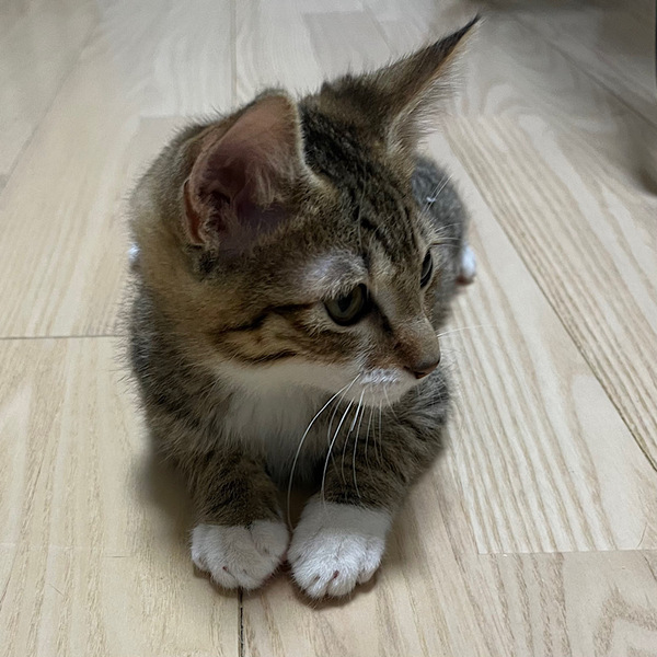 | 特徴(性格など) | 手には短めの手袋、足は長めのソックスがチャームポイント。好奇心旺盛で物怖じしない性格です。猫とも人とも一人でも、元気に遊ぶ男の子です。 猫とも人とも仲良くなれそうなので、先住猫がいるご家庭でも大丈夫。 兄妹のニックくんやもとちゃんと一緒のお迎えも大歓迎です。 |