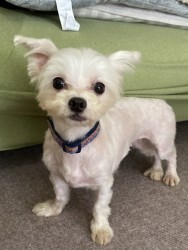 | 特徴(性格など) | ■特徴(仮の名前:ふわり) マルチーズ♀白 推定8歳 体重3.1㎏ ■️性格・暮らし ・甘えん坊です。 ・室内でも散歩でもトイレは出来ますが、シートでは練習中です。 ・散歩は練習中です。 ・お留守番も就寝中もサークルにて可能です。 ■️今までに行った医療行為 ・5種混合ワクチン(11/2) ・フィラリア検査(陰性)(11/6) ・狂犬病ワクチン接種(11/6) ・マイクロチップ挿入(11/17) ・歯科処置(11/17) ・避妊手術(11/17 ・血液検査(11/6) ・検便(-)(11/17) ■今後行う予定の医療行為 なし |