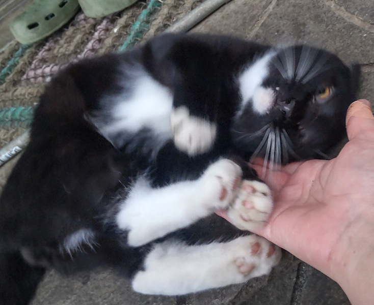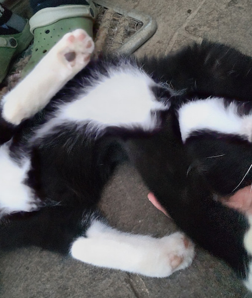 | 特徴(性格など) | 艶々のキレイなソックス猫です。 まだあどけなさが残る、馴れ馴れの男の子。 とても愛嬌があり、よそ者の私の前でもひっくり返ってお腹を見せてくれます♪抱っこもできます。 |