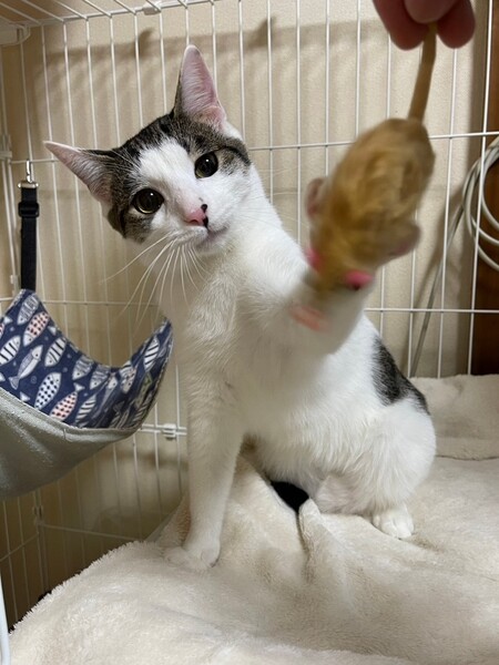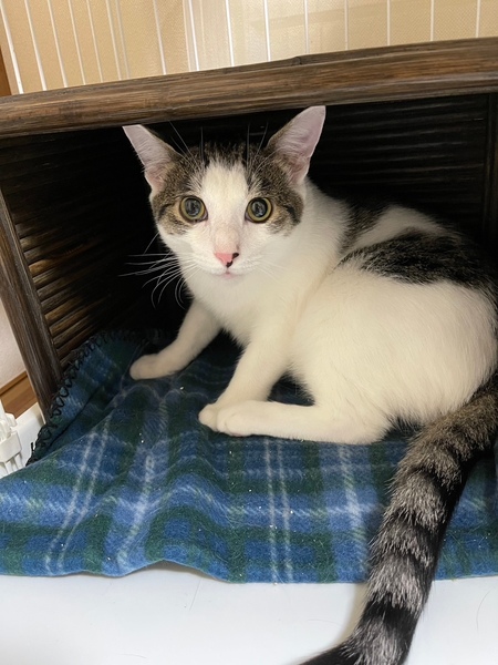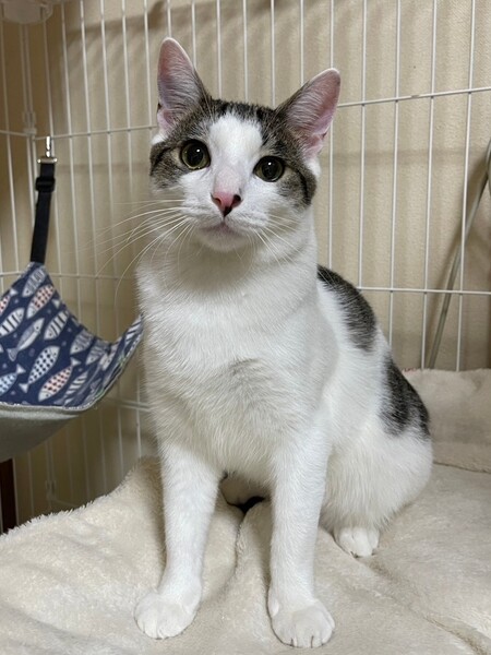 | 特徴(性格など) | 仮名)ラグー 7ヶ月 キジ白の男の子 ちょっと天然で甘えん坊さん |