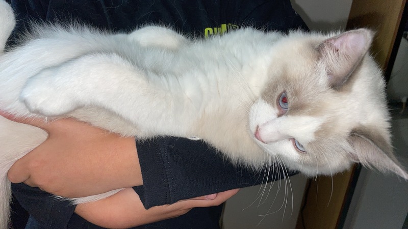 | 特徴(性格など) | 毛色ブルーポイントバイカラー ラグドールのサラちゃんです。おっとりしていて人懐っこい性格です。ドールとつくだけあって抱っこも嫌がらずにさせてくれます。 同居猫ちゃんと仲良く暮らしているので多頭飼いのお宅でも大丈夫です。 |