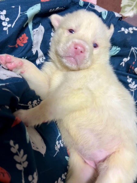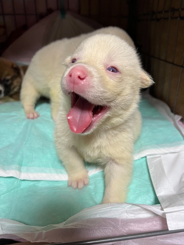 | 特徴(性格など) | ミルクから人の手で育てられたため、人慣れは十分です。甘えん坊さんに育っています。 保護時は弱っていましたがここまで育ってくれました。現在のところは特に問題なく、ミルクもたくさん飲んでコロコロ子犬らしいです。離乳食に移行中です。 ノミダニ駆除済(フロントラインスプレー) お腹の駆虫済(ドロンタール投薬) 6週齢になりましたら、混合ワクチン・血液検査等の医療を行います。 |