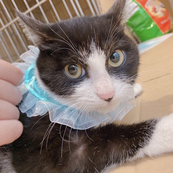 | 特徴(性格など) | 黒と白のハチワレちゃんでお顔がキュートなのが特徴でご飯大好きの甘えん坊さんです❤︎ かなり人慣れしてきました。少し怖がりなところもありますが、人に甘えるのが大好き!だけどちょっと恥ずかしそうにしていたりお茶目なところもある男の子です(^-^) ゴロゴロもスリスリもフミフミもたくさんしてくれます。 うんちとおしっこは教えなくても自分からトイレで出来る偉い子です。 血液検査では白血病は陰性、猫エイズが陽性(疑陽性)でした。 6ヶ月未満での検査では母猫の母乳などに反応して陽性と出る事があるそうです。 6ヶ月以降で再検査をすると陰性となる場合があるそうなので去勢のタイミングで再度血液検査を行なう予定です。 ですが、現在は陽性と出ておりますので、病気の事をきちんとご理解頂ける方のみでお願い致します。 膵ヘルニアでお腹にポッコリしたものがあります。 病院の先生曰く、先天的なものらしく、問題はないそうなので早く除去しないといけないという事はないそうです。 去勢時に一緒に除去してもらうといいと先生からは言われました。 ポンちゃんの負担の事を考えると去勢時に一緒に行ってもらった方がいいと私も思いますので、去勢時に取って頂くようにお願いしたいです。 去勢時期:1月下旬 |