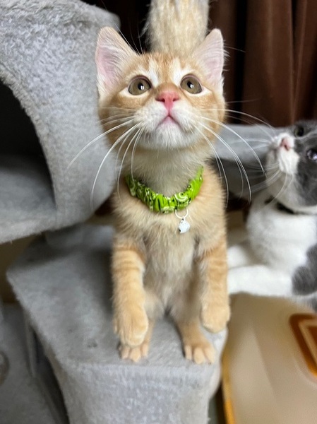 | 特徴(性格など) | ☆☆☆ご希望の方は、以下のアンケートフォームにご記入の上、送信してください☆☆☆ ねこ親希望アンケート→ http://chibawan.net/contactform_cat 【猫No】3595 【愛称】こがね 【性別】オス 【年齢】推定2ヶ月半(22/09/13頃生) 【毛色】茶トラ 【体重】1.2㎏(22/11/28現在) 【状態】去勢手術済、マイクロチップ装着済、ワクチン2回済(2022/11/28)、血液(ウイルス)検査済(猫エイズ・猫白血病共に陰性)、ノミ・ダニ駆除済、検便駆虫済、トイレ躾済 【預かり場所】神奈川県川崎市 【日記】renhana7(インスタグラム) https://www.instagram.com/renhana7 【経緯】千葉県動物愛護センターより引き取り 【性格】すりすりゴロゴロ甘えんぼで元気いっぱいのやんちゃ坊主です。同じ年頃の仔猫同士でもよく遊びますし、年上の猫とも上手に付き合えます。ただ元気がよすぎるため、静かに過ごしたい猫には敬遠されるかもしれません。食事は1日3回ドライフードにウエットフードをトッピングしたものを食べてます。好奇心旺盛で怖いもの知らず、足元について歩くので、脱走には注意が必要です。 【その他】まだまだスキンシップやお世話の必要な子猫であるため、できるだけお留守番の短いご家庭を希望します。 愛情いっぱいの終生飼養、猫にあった生活スタイル、完全室内飼育、定期的なワクチン接種などの健康管理をお約束いただけ、迷子防止に細心の注意を払ってくださる、関東近県のご家庭でアンケートに快くお答えいただける方からのお問い合わせをお待ちしています。 なお大変申し訳ありませんが、単身の方や主にお世話してくださる方がご高齢の方のご家庭である場合のお申し込みにつきましてはお断りさせていただきますので予めご了承ください。 |