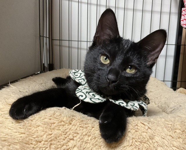 | 特徴(性格など) | ☆☆☆ご希望の方は、以下のアンケートフォームにご記入の上、送信してください☆☆☆ ねこ親希望アンケート→ http://chibawan.net/contactform_cat 【猫No.】3597 【愛称】ひかり 【性別】オス 【年齢】5ヶ月(22/07生) 【毛色】黒・中くらいの長さ・真っ直ぐのしっぽ 【体重】2.1kg(22/12/3現在) 【状態】ノミダニ駆除済・駆虫済・トイレ躾済・ワクチン接種済(22/10/19)・血液検査済(猫エイズ(ー)、白血病(ー))・去勢手術済、マイクロチップ装着済 【保護場所】野田市 【日記】http://instagram.com/kemikemi1206 【経緯】横浜市動物愛護センターより引き出しました。 【性格】黒猫好きさんにはたまらない、艶やかな漆黒の被毛が美しい美猫です。 ぱっちりした黄金の瞳は夜空に瞬く星のようです。 知らない環境にはじめは緊張しますが、とてもよく人馴れしており、すぐに慣れます。 一度信頼関係を築くと、頭を擦りつけては撫で撫でをせがみ、喉をゴロゴロ鳴らして喜びます。 少し恥ずかしそうに、人の反応を見ながら控えめに甘えてくる姿には母性本能をくすぐられます。 おっとりとした優しい性格の男の子なので、猫との暮らしが初めての方にもお勧めです。 預かり宅の先住猫には、構って欲しくて近寄っていきますので、先住猫がいても大丈夫ですが、子猫がぐいぐい甘えにきても気にしない、おおらかな先住さんだとベストです。 犬とは相性次第ですが、猫に優しく接することのできる犬となら仲良くなれるかもしれません。 ひかりは1匹飼いで溺愛していただいても、先住さんの弟分としてもどちらでも大丈夫かと思います。 預かり宅ではお留守番も上手にこなしていますが、まだ子猫ですので、遊び相手になる若猫がいた方が良いかもしれません。 兄弟のつきとペアで迎えていただくのも大歓迎です。 育ち盛りの、ひかりの日々の様子や育猫についての悲喜こもごもを、インスタグラムに毎日アップしています。 ひかりの性格も垣間見えますので、是非ご覧下さいませ。 【その他】完全室内飼育で終生愛情を持ち、ひかりに合わせた生活スタイルで暮らしてくださる方、定期的なワクチン接種や、その時々において必要な医療処置等の健康管理を約束していただける方からのお問い合わせをお待ちしております。 可愛いひかりに会いに、預かり宅までいらして下さい! ※ 大変申し訳ないのですが、猫が幼齢のため、55歳以上の方からのお申し込みはお断りする場合がございます。 ※ 猫との暮らしが初めてのお子さまには、アレルギー検査をお勧めしております。(短時間猫と触れ合った経験だけではアレルギーの有無はわかりません) 責任ある終生飼育には必要なことですので、ご理解下さいませ。 |