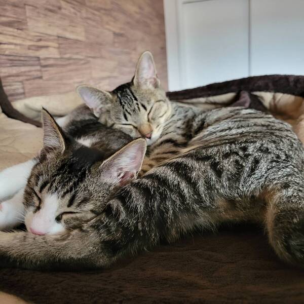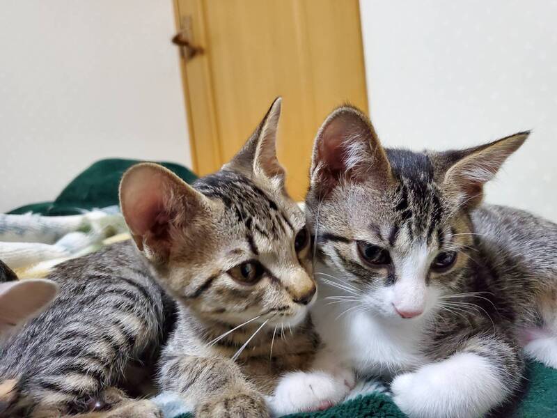 | 特徴(性格など) | 2匹とも人懐こくて、すぐにゴロゴロ、スリスリしてきますし、夜は人間と一緒に寝ようとします。 初めて会う人にもフレンドリーです。 キジシロ、キジトラともに女の子です。 |