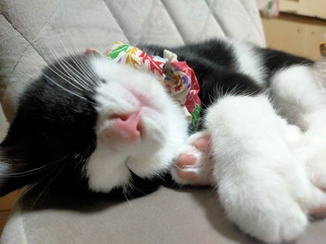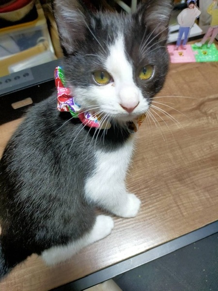 | 特徴(性格など) | 黒の短足ハチワレの男の子! 左の脇腹には、白線が一本入ってます! 人と子供慣れしてます! 猫じゃらしで遊ぶのが大好きです!普段はおっとりしてますが、遊ぶ時は思いっきり遊びます! |