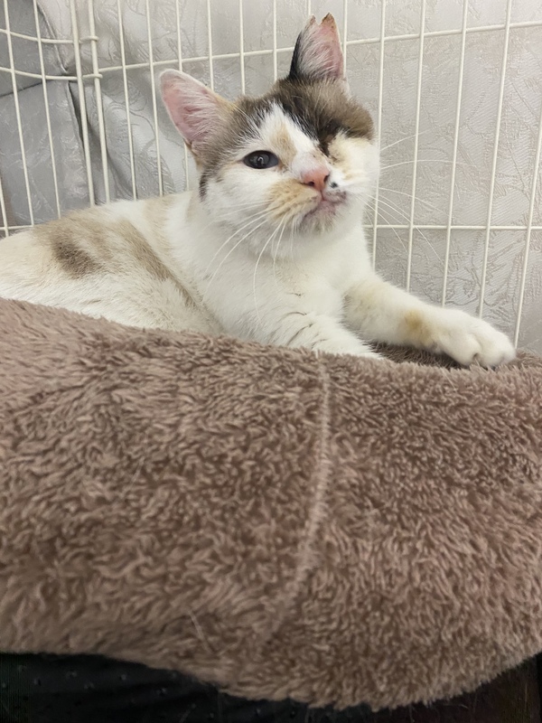 | 特徴(性格など) | ☆ポインテッド柄(グレー、ブラウン、白) ☆ブルーアイで片目の眼球がありません。 ☆ウイルス検査はエイズ、白血病ともに陰性 ☆ワクチン接種済み ☆ノミダニ寄生虫駆除済み ☆おとなしく人懐こい。話しかけると甘えてフミフミします♡ |