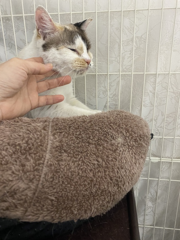 | 里親募集する理由 | 実家でご飯をあげていた野良猫さんです。TNRしようと捕獲して動物病院に連れていきました。避妊の手術痕があったため手術はせず、耳カット、ワクチン接種、ウイルス検査、ノミダニ寄生虫駆除を行いました。とても人懐こく大人しい性格なので成猫でも譲渡先に適応できると思い、里親さんを探すことにしました。 | ||