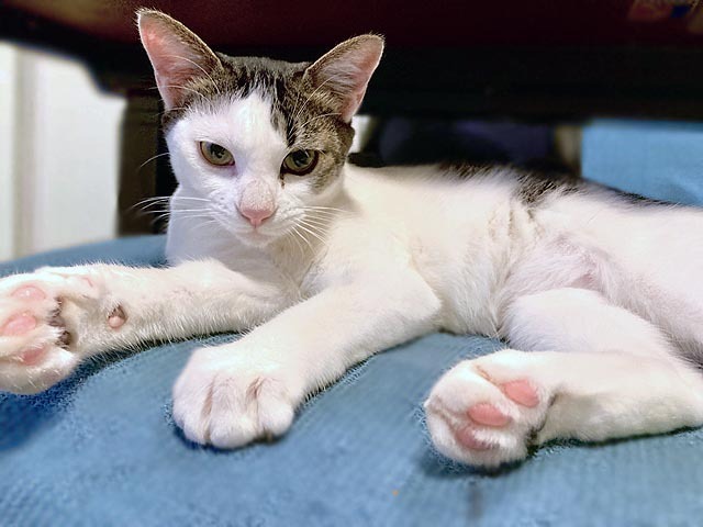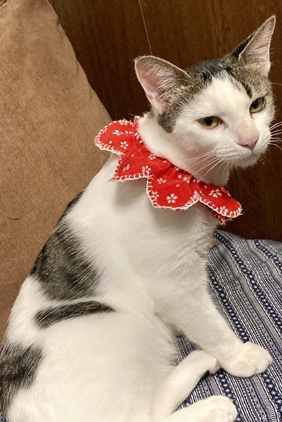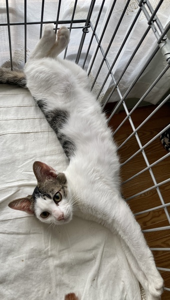 | 特徴(性格など) | 良く遊び良く食べ良く寝る 活発な子。 猫馴れ人馴れも良く、撫でられるのが大好きです。 寂しくなるとペタッと傍に寄ってきて甘えます。 たくさんお世話して、遊んで触れ合うことで、信頼してくれます。 ゴロゴロ喉を鳴らしながら甘えてきます。 我が家に来て3ヶ月が過ぎましたが、抱っこや、爪を切ることが出来ますし、顏を近づけて舐めてもくれます。 一度も威嚇したり、噛んだりしたことはありません。 声は小さく、まるで歌うかのようなソプラノなので、鳴き声がうるさいということもなく可愛いです。 また、好奇心旺盛なお転婆さんです。 手をばしゃばしゃしながら飲むという、水の飲み方に癖があります。 水遊び好き、悪戯っ子。 たくさん遊んであげてください。 先住猫や犬がいても、フレンドリーなので大丈夫かと思います。 |