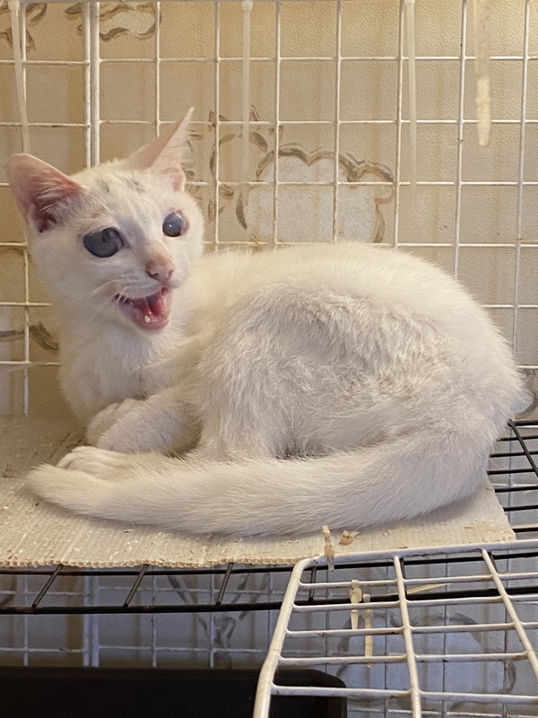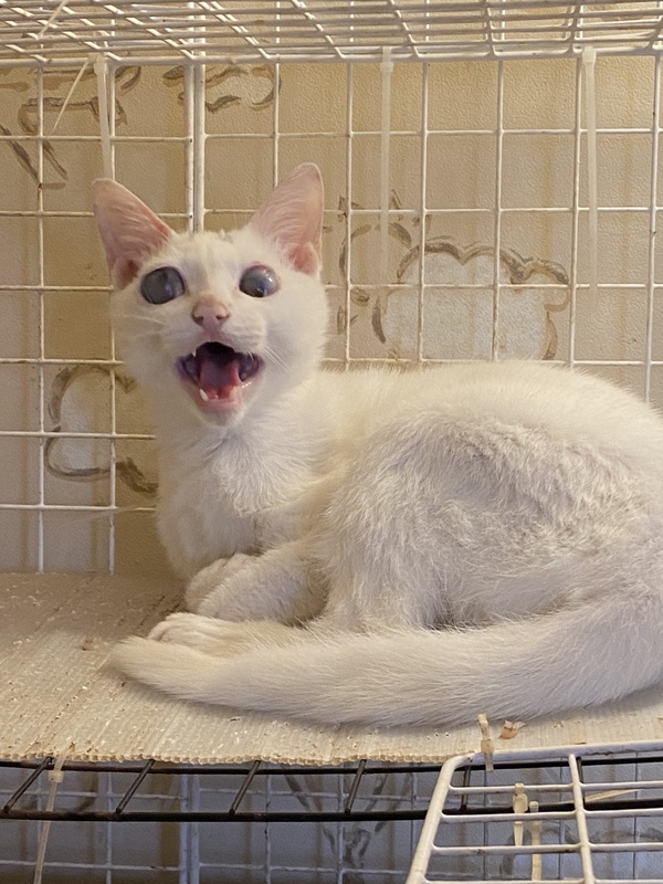 | 特徴(性格など) | ある日突然、地域猫がいる海辺に現れました。 両目が不自由な状態でしたが、捨てられたのではないかということです。 目は光を感じている程度かも知れないという診断です。 保護当時から、非常に人懐っこい子で甘えん坊です。 目が不自由ですが、育てやすい子だと思います。 |