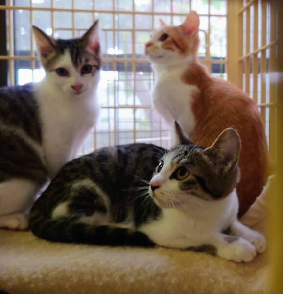 | 特徴(性格など) | 茶白がオス猫 穏やか キジ白オス猫 少しびびり キジ白メス猫 穏やか キジトラメス猫 穏やか |