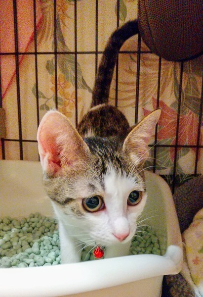 | 里親募集する理由 | 庭に来ていた猫さんが妊娠してしまい、7匹も仔猫を産んでしまったと 保護依頼がありました。その兄弟姉妹の中の1匹です。 お誕生日は7月初旬と聞いています。 |