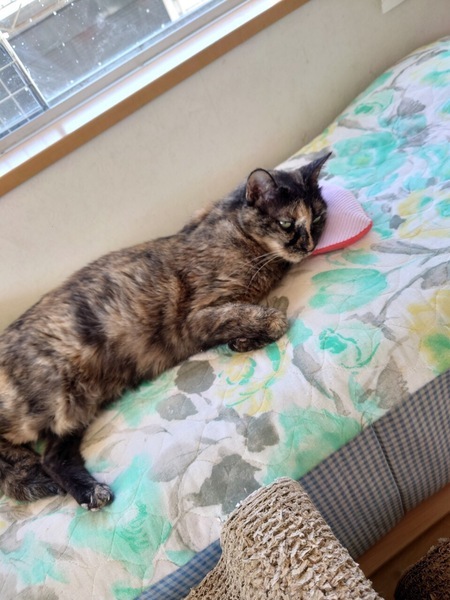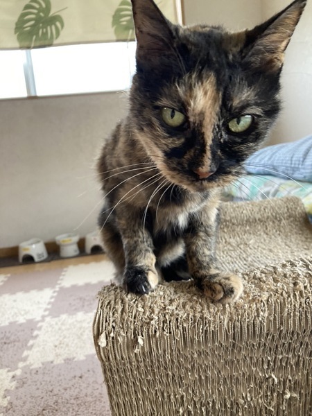 | 特徴(性格など) | 9歳~とても大人しい人馴れ◎のサビ猫の女の子です。人のお膝に乗るのが大好きでスリスリゴロゴロの甘えん坊さんです。ルームではよく日向ぼっこをしています。猫との相性が少し悪くできれば単頭飼いか先住さんがおられる場合はトライアルで様子を見た方がいいと思います。人が大好きな子ですのでできればお家で長く一緒にいられる方にお願いしたいと思っています。エイズキャリアの子になりますが現在未発症でよく食べとても元気です。 猫エイズ(+) 白血病(-) 猫エイズ陽性のりんご猫です |