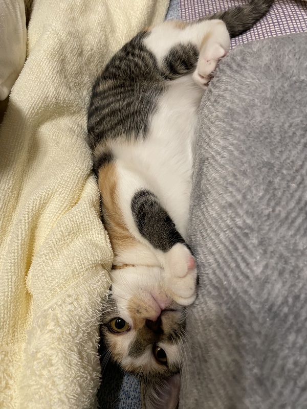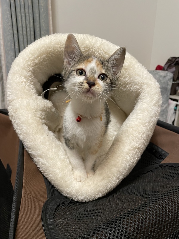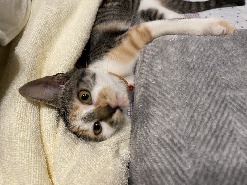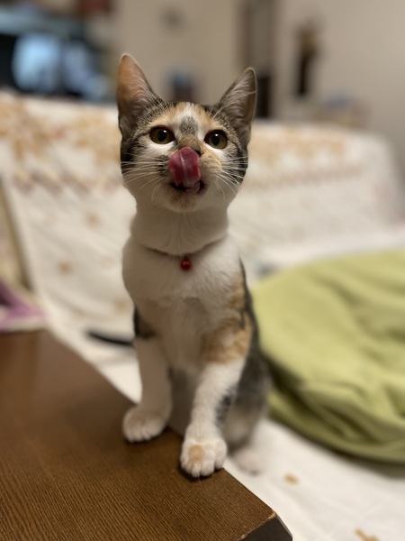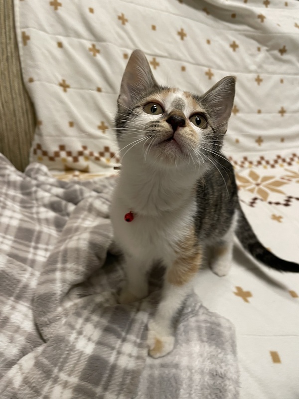 | 特徴(性格など) | 猫の健康状況 食欲旺盛・元気いっぱい 白血病・エイズウイルス 陰性 ノミ・ダニ・虫駆除済み 良好です 猫の特徴など 頭の良い猫です。人にも猫にも慣れております。 一緒に過ごしている猫たちとすぐ仲良しになりました。 甘ったれのところもあり、ツンデレのところもあります ネコにも慣れております。 縞三毛・少し小さめ 尻尾は真っ直ぐ長いです |