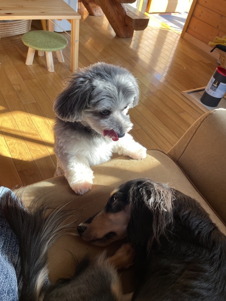 | 特徴(性格など) | 甘えん坊さんで人もワンコも大好きな子です。 寝る時にはお布団に入って来るか頭元でくっついて寝てます。 お散歩も好きな子です。トイレは出来ます。 |