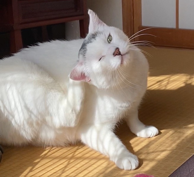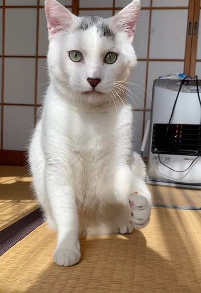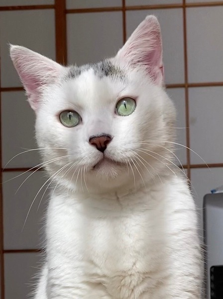 | 特徴(性格など) | とても大柄で、頭に漢字の「人」のような特徴的な模様を持つ男の子です。この模様は白地に灰色で、後頭部側から見るとまるでジャンガリアンハムスターが頭に乗っているかのように見える、非常にユニークで可愛い模様です。毛並みは少し硬めで、柴犬に近い触り心地をしています。 人慣れはしており、自分から撫でろと寄ってくる、人好きな子です。普段の鳴き声はハスキーボイスですが、甘えてくるときは若干高めの声でスリスリしてきて、撫でるとゴロゴロ言います。おもちゃには今のところ興味ないようですが、このように構ってちゃんなところがあります。尻尾の付け根をトントンされるのが好きで、また顔回りを撫でられることも大好きです。少し甘噛み癖があるようで、撫でてからしばらくすると噛まれることがありますが、それでも撫でろ撫でろとしつこく甘え続けてきます。今はまだできませんが、慣れれば抱っこも可能であると予想しています。 ごはんは、なんでも食べますが、ウエットよりカリカリの方が好きなようです。 通院中も暴れることなく、大人しく診察を受けることができるお利口さんです。保護してからも夜泣きすることなく、またおトイレも鉱物砂を使用しており、外すことなく上手にできる賢い子です。 |