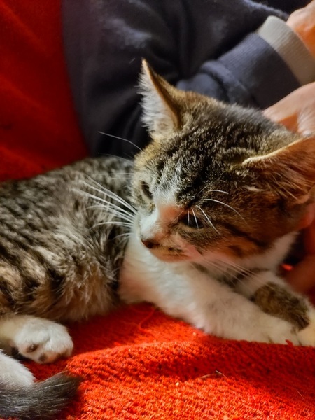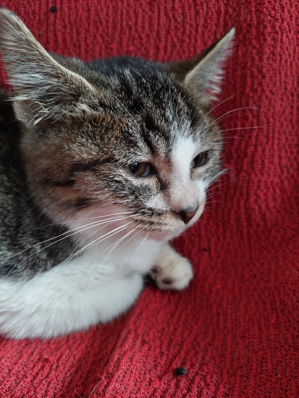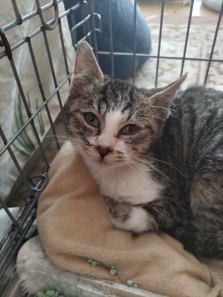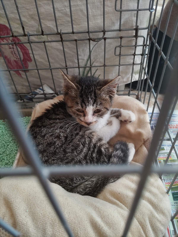 | 特徴(性格など) | キジ白の女の子。保護した時890g。 おとなしくてはにかみ屋で可愛いです。 |