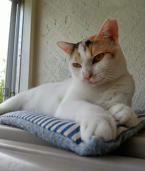 | 特徴(性格など) | 【猫の仮名】 ブー 【毛色・柄】 三毛、ボブテイル 尻尾は超短いウサギしっぽで、身体はとても小さいです。 とても人懐っこく、人の後をついて回り、スリスリしてくれます。 人間が好き過ぎて、他の猫さんとうまく付き合えない時があります。 1匹で可愛がってくださる方にお勧めです。 |