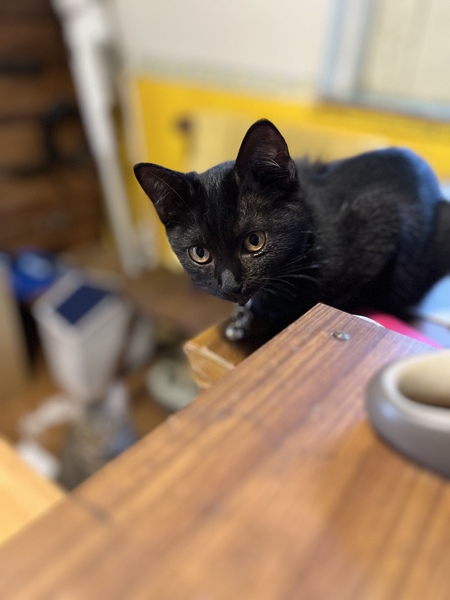 | 特徴(性格など) | 真っ黒の黒猫。目は金。 | ||