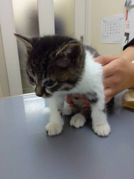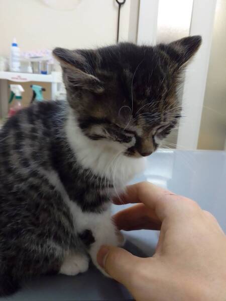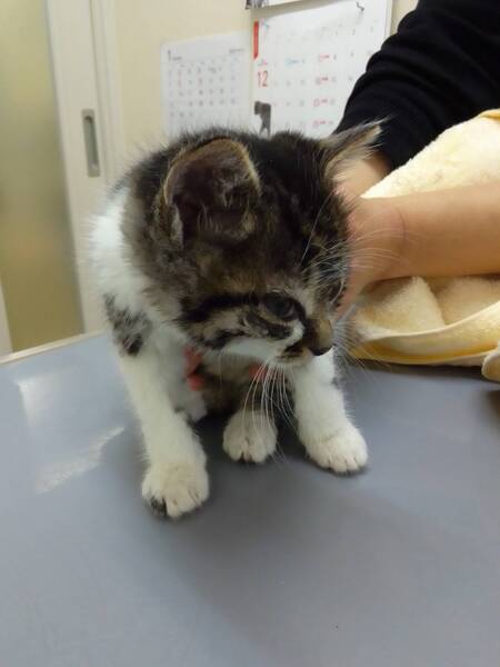 | 里親募集する理由 | 12月11日、海岸の公園にて、段ボールの中でまるまっているところを発見しました。そのまま病院へ行ったところ、軽い風邪をひいている以外は元気なようでした(暖かくなってきたからか、診察待ち中より元気に動き始めました)。そのまま数日入院させてもらうことになりました。 自分の住居はペット禁止のため、里親を募集することにしました。 かわいい娘ですので、どうかよろしくお願いいたします。 |