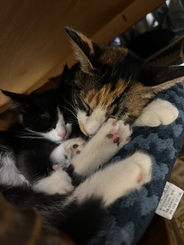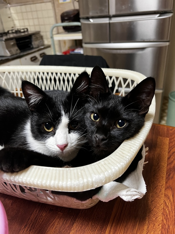 | 特徴(性格など) | 黒〔2歳〕子 白黒〔2歳〕子 ミケ〔3歳〕母 みんな人見知りですが懐くと抱っこをせがんできたりします。 |