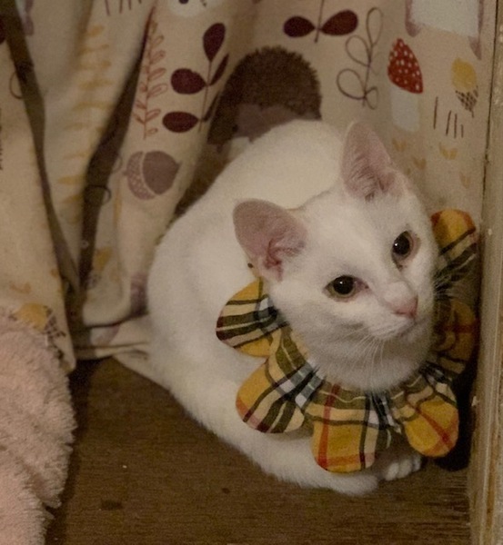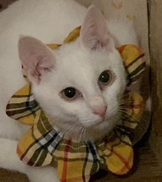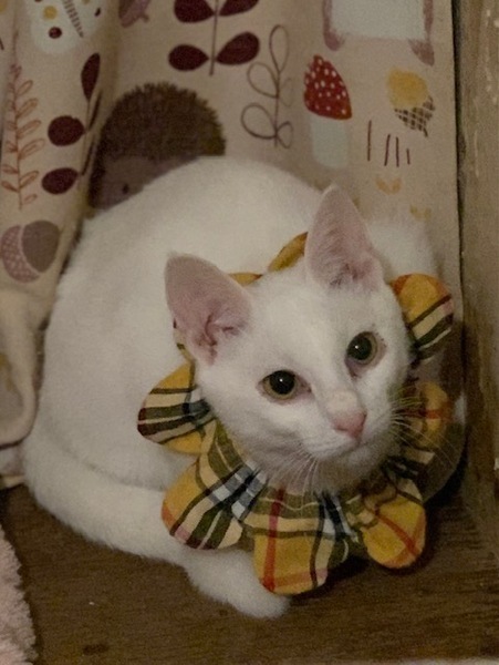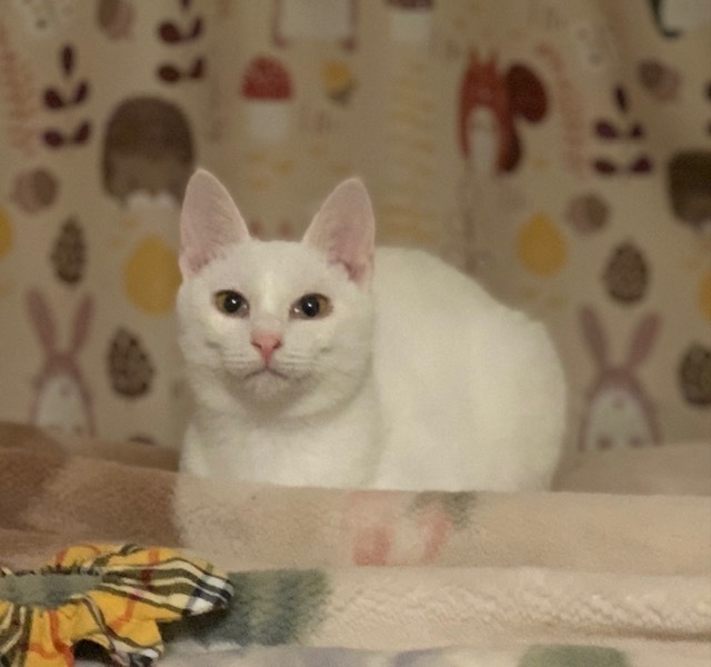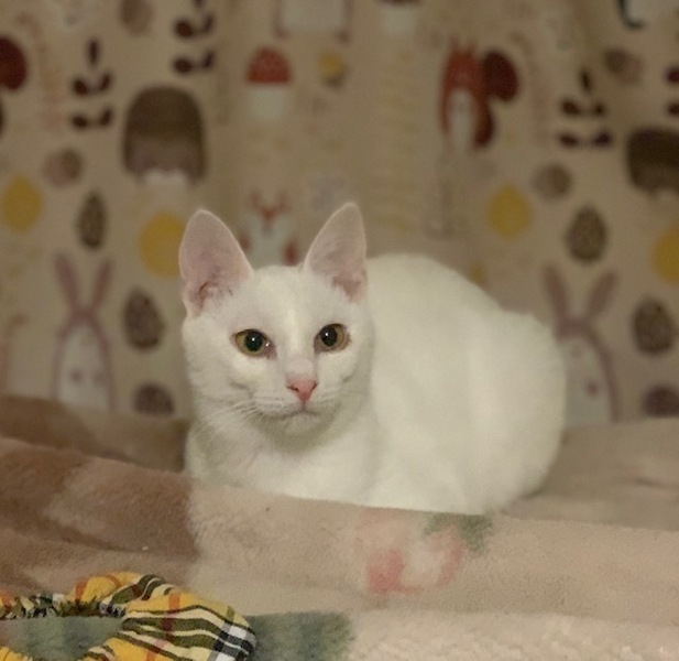 | 特徴(性格など) | 【保護先】 埼玉県鶴ヶ島市 【仮名】 キティ 【性別/年齢】 メス / 8ヶ月 【毛色】 白。しっぽは長くてまっすぐ 【コメント】 人馴れしている。抱っこもOK |