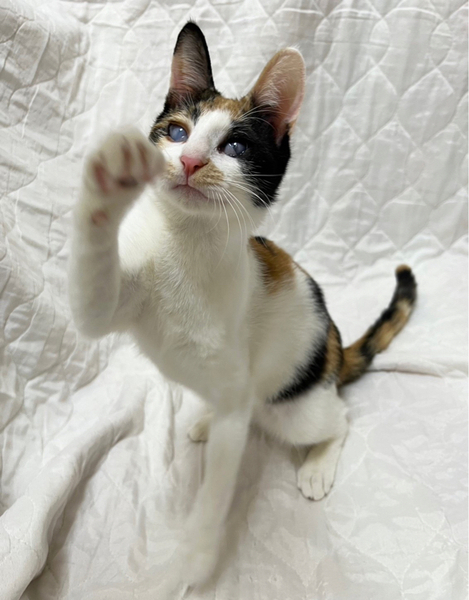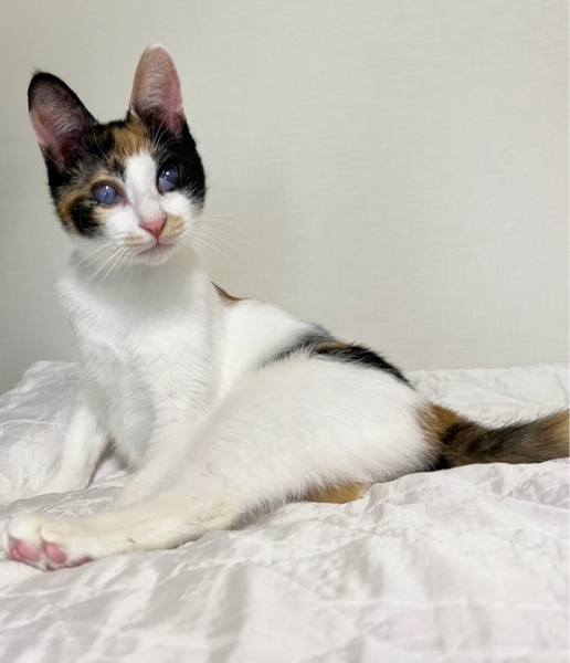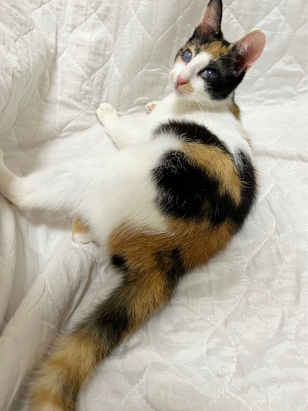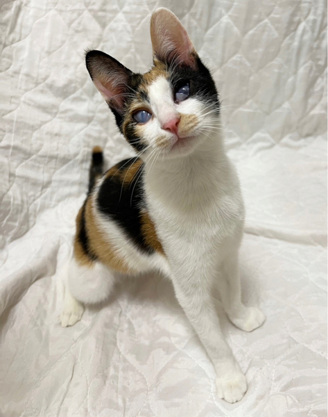 | 特徴(性格など) | 目に白濁が残り視力はあまり良くありませんが、両目とも見えています。 性格が物凄くかわいい子で人馴れ抜群なので、目の事をご理解くださる方でしたら猫飼い初心者の方にもオススメです☆ ゚・*:.。. .。.:*・゜゚・*:.。. .。.:*・゜゚・*:.。. .。.:*・゜゚・*:.。. .。.:*・゚ アタチには名前がなかったので、熊本市のセンターで『みくに』という仮名をもらったわ。 幸せになれると信じて、お空を飛んで東京にやってきたわ コンタクト治療ってやつをして貰い、しばらく嫌だっけどがんばったんだよ。 その甲斐あって目はこれ以上悪くなる事はないって先生に言われたわ あたち、人が大好きだからよろしくね! ゚・*:.。. .。.:*・゜゚・*:.。. .。.:*・゜゚・*:.。. .。.:*・゜゚・*:.。. .。.:*・゚ 【性格】 人も猫も大好きなとても愛想の良いかわいい三毛猫みくにちゃんのご紹介です。 画像の通り、みくにちゃんの目には白濁と瞬膜が残っています。 これは、多頭崩壊による猫風邪の蔓延で、飼育放棄されていた為にこのような目になってしまいました。 実は、みくにちゃんは訳あって熊本市からお空を飛んで(飛行機にて空輸)やって来ました。 その理由は、熊本市のセンターにて殺処分対象となっていたからです。 こんなかわいい子達の命を奪ってはならない!とそう思い、当会(NPO法人府中猫の会)で、40 匹の猫達を空輸し、東京に連れて来ました。 その様子を宜しければYouTubeにアップしておりますのでご覧くだされば幸いです。 https://youtu.be/Qb7i0xsWO2o みくにちゃんを連れて来て、直ぐに治療にとりかかりました。眼科のプロの先生の所で、やれる限りの積極的治療を致しました。 角膜剥離手術の後、コンタクトレンズを使用して、角膜を綺麗にする治療をし、みくにちゃんの目の視力をアップさせました。 治療の甲斐があって、熊本から連れてきた当初より視力はアップ致しました。 これ以上悪くも良くもならないと先生からです。 あとは、目ヤニが出たら、たまに拭いてあげてください。念のための目薬も渡せます。 こんなにかわいい子はいないのではないか?というぐらいかわいい子でして、預かりをメロメロにさせてくれました。 代表宅時代のみくにちゃんの様子はこちらをご覧ください。 https://youtu.be/k5P2Y-rTkB0 みくにちゃんが気になる方は、YouTubeのちゅー猫チャンネルに最近の様子もアップ予定ですので、ぜひご覧ください。 天真爛漫であり、人慣れ抜群、どんな猫とも上手くやっていける魔性の女の子です(笑) 目が悪い分、器量よしのかわいい子なので、自信を持ってオススメさせていただきます。 注意点としては、高い所に登る事が出来ても、下に下りる事ができないので、その辺を考慮してくだされば、あとは他の猫達となんら変わりありません。 詳しくは、譲渡会のスタッフまでお問い合わせください。 お留守番もできます。 猫の社会化は抜群に長けているので、先住猫さんさえOKならば問題なく迎えていただけます。 詳しくは譲渡会スタッフまでお問合せください。 かわいいかわいいみくにちゃん 目にハンデがある事も全て受け止めてくださる素敵な出会いがあると信じて、譲渡会に参加致しますので、どうぞよろしくお願いします。 |