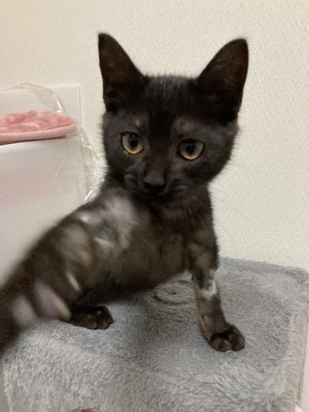 | 里親募集する理由 | 保護前はお外で母猫と過酷な中、5兄妹だったそうですが発見時には、この子と母猫だけでした。(母猫はTNRしました)発見時弱っていましたが入院治療で回復し推定三ヶ月ですが小柄な子です。スリゴロの甘えん坊なので可愛がってくださる里親様に繋がればと募集しました。是非よろしくお願い致します。※お手ての毛は保護時点滴の為、毛剃りした痕で綺麗に生えてきています。動画でいつもの様子をお見せしますのでお話が進み、迎える準備ができましたらトライアル日時をご都合のいい日に決めたいと思っております。 | ||