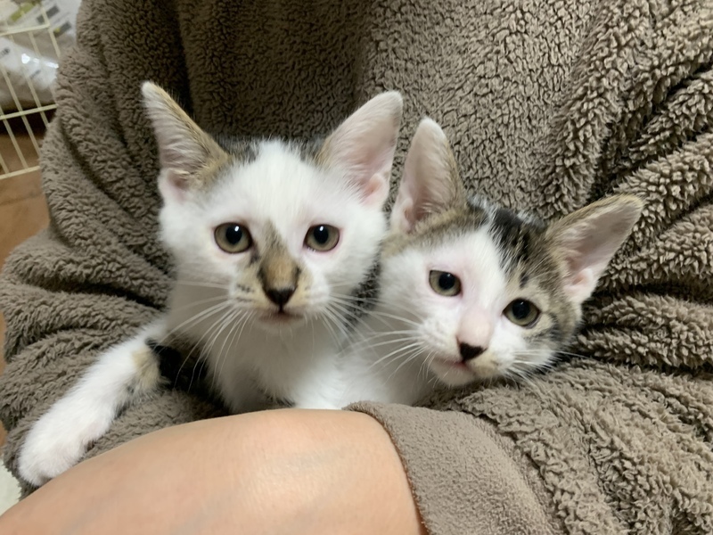 | 特徴(性格など) | オス:白黒少しトラ→少し臆病で警戒心強めですが怖くないと分かれば甘えん坊です。 メス:サバトラ→好奇心旺盛で積極的です。 どちらも遊ぶの大好きでオモチャで遊んでゴロゴロしてきます。 |