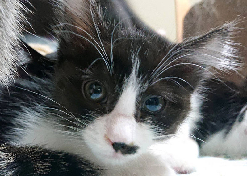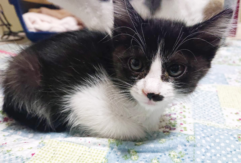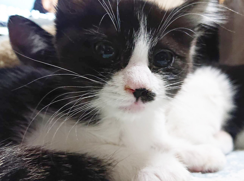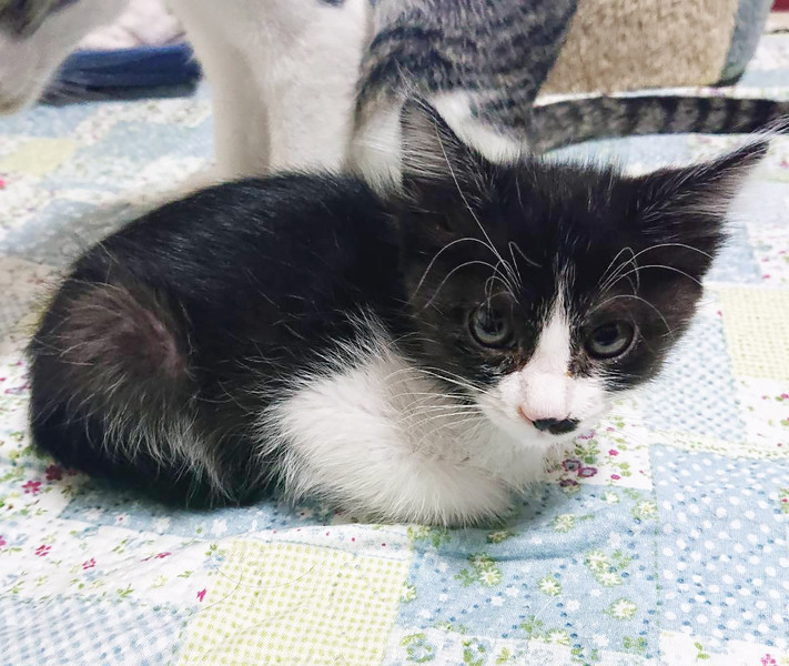 | 特徴(性格など) | 甘えん坊の黒白猫さんです。シャム風の妹がいます。 兄妹一緒に迎えてくださる方を希望します。 駆虫・ワクチン2回・マイクロチップ挿入済みです。 |