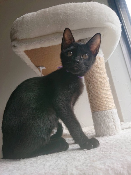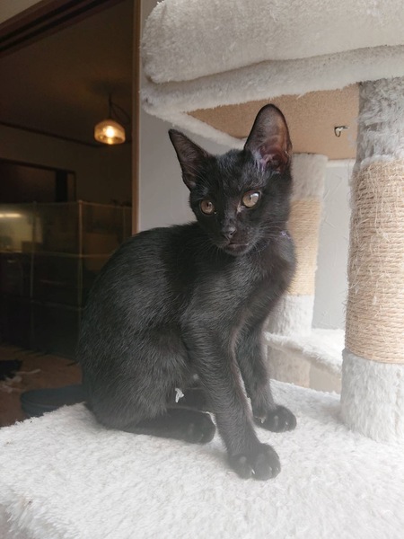 | 特徴(性格など) | 黒色。尾尻ストレート。 少し臆病ですが、人馴れしてます。元気いっぱいです。 ウィルス検査陰性(猫エイズ、白血病) 姉妹のピンちゃんとなるべく一緒に希望致します。又は先住猫ちゃんいる方。 1匹飼育の方はご相談させていただきます。 |