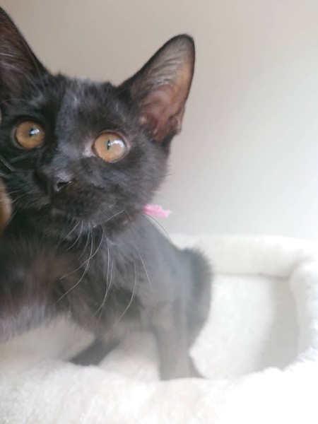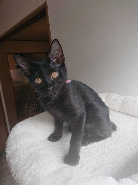 | 特徴(性格など) | 黒色。尾尻短め。 お転婆ちゃん、でも甘えん坊さんで。人馴れしてます。 ウィルス検査陰性(猫エイズ、白血病) ムラサキくんとは兄姉です。一緒に2匹希望します。又は先住猫ちゃんいる方希望します。 |