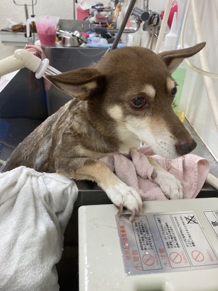 | 特徴(性格など) | 名前:イト 犬種:ジャックラッセルテリアmix、ケルピーmix 性別:メス♀ 毛色:チョコタン 年齢:推定8歳くらい 体重:8キロくらい 性格:ちょっと神経質でちょっと気難しいわんこのイトちゃん。 人に触られたり、抱っこされたり好きなんですが、 嫌なことをされたりすると本気で噛みます! 今わかっている嫌な事は、肛門腺絞り、爪切り、バランスの悪い抱っこなど 預かっている間に、だんだんとできることも多くなり噛む事も少なくなってきてはいるのですが、まだまだ油断できません。 かといって、触れないくらいに噛むかというとそうでもなく、全身で甘えにきますし、一緒にボールなどで遊ぶ事も可能です。 トイレは、完全に外でやりたいようです。 今まで家の中では一度もしていないです。 全て散歩の時におしっこもうんちも済ましています。 他の犬とは、何にもトラブルないです。 犬の中にいると安心するようで、イトも落ち着いています。 散歩は上手に歩きます。 最初は少し引っ張りますが、おしっこうんちが終わればほぼ引っ張る事なく、人のペースに合わせて歩きます。 ちょっとシャイなイトですが、末長く次こそ捨てない飼い主さんに迎えて欲しいと思っています。 是非、面会にお越しください。 |