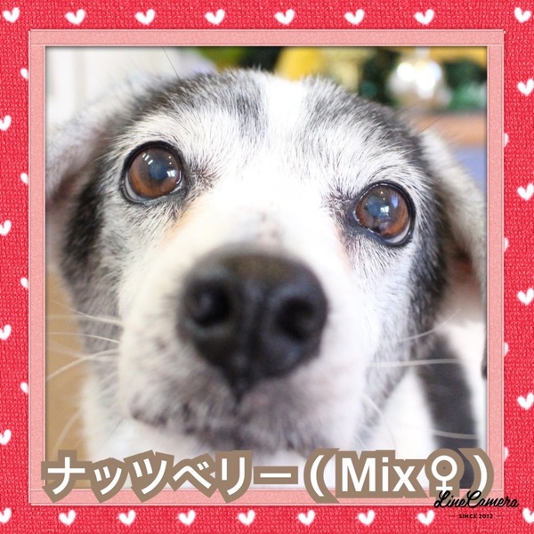 | 特徴(性格など) | 名前:ナッツベリー 犬種:Mix 性別:メス♀ 毛色:白黒 年齢:11〜12歳ぐらい 体重:7.2kg 性格:とても穏やかで可愛らしい子です。 人が好きで、遊ぶと言うよりは、寄り添りたいタイプです。 公園の道、ナッツが嫌な箇所はめっちゃトロトロ歩き 好きな場所はスタコラサッサで歩きます。 散歩後は、ソファ、ベッドと時々場所換えてぐっすりお休み、掃除機かけても起きない。 ナッツベリーはとくにおとなしい、他の犬にも自分からめったにクンクンいかず、じっと終わるまで待ってます。 |