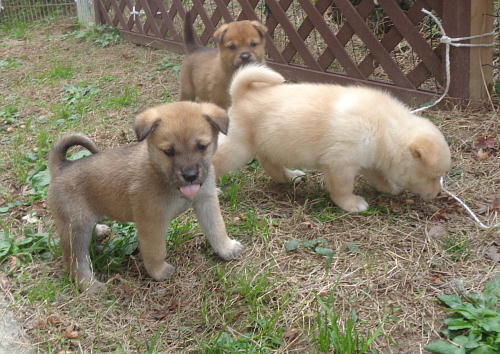 | 特徴(性格など) | 性格:人の手により育ちましたので人が大好き、甘えん坊さんメス子犬です。仲間の子犬たちと元気に遊び社会性を学習中です。甘噛みが始まりました。 医療面:健診済み 検便・駆虫薬投与済み(12月12日) ノミダニ予防済み 2種混合ワクチン接種済み その他:成犬時は中型犬予想です。 |