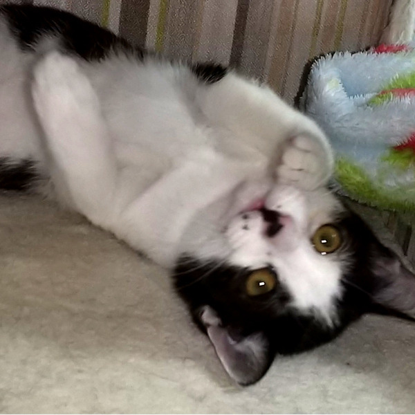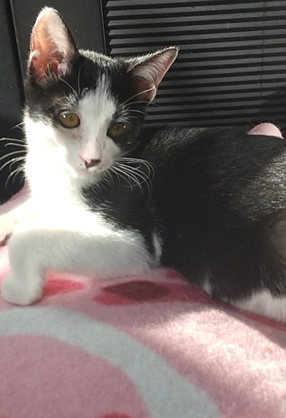 | 特徴(性格など) | 白黒はちわれ 口元のホクロがチャームポイント 泣顔ぽくみえる可愛い子♪ 人懐っこいので直ぐに馴染み 育てやすい猫ちゃんです。 食べる事が大好き♡ 保護時300gのちみっ子でしたが 良く食べ・寝て・遊びすくすく成長。 現在2.5kgです。 |
