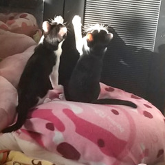 | 里親募集する理由 | ママ猫が衰弱した子猫を連れて来た為 親子で保護しました。 自力で食べられるようになるまで入院 その後、姉妹猫を保護し、 里親様募集をする事に。 家の高齢先住猫達には子猫は 受け入れられないため 自由に遊んで暮らせるお家を探して いますm(_ _)m |