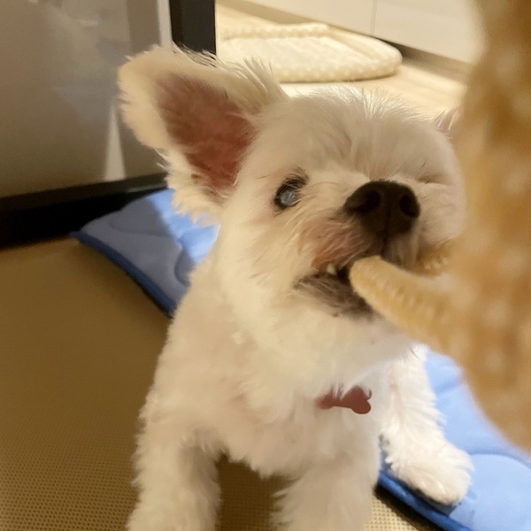 | 特徴(性格など) | 【はじめに】 ◉預かりブログ・HP・譲渡条件を必ず熟読の上、アグリドッグレスキューの専用フォームからご応募お願いいたします。 アグリドッグレスキューHP https://aguri.nomaki.jp/ 預かりブログ『あんこがしみる』 →https://ameblo.jp/kotoratoann/ 譲渡条件 http://aguri.nomaki.jp/z.html ★【アグリドックレスキュー応募アンケートフォーム】★ http://my.formman.com/form/pc/HSiHA19xGo1sxlwu/ 育くん(仮名) ・マルチーズの男の子 ・推定6歳くらい ・体重:3.5kg ・血液検査済 ・フィラリア検査(−) ・便検査 (−) ・混合ワクチン接種済 ・右眼萎縮による小眼球 ・左眼角膜炎による白濁有り ・去勢手術・歯科手術済 ・マイクロチップ装置済 ・狂犬病予防接種済 70頭を超える多頭飼育放棄から引き出したマルチーズの育くんです。 ◼️性格 環境に慣れるまで時間のかかる子ですが、家の中では活発で、遊んだり甘えたりするのが大好きな男の子です。 外や慣れない場所ですと少し怖がりな面がでたり、寂しがりやな面があります。 ◼️散歩 引き出し時は散歩の経験がなかった為か、外は怖がる様子でした。 徐々に慣らしたところ、静かな道や人通りの少ない道では元気いっぱい走ります。 本犬は散歩に行きたがる様子はありませんが、健康の為1日2回15分づつ散歩に行っています。 ◼️健康面 右眼は傷か何かを放置されてしまったようで萎縮して小眼球です。 左眼は角膜炎による白濁が有り、目の表面が歪で中のレンズがズレていそうとのことで視力は低いと思われます。 元気に動き回ると、たまにどこかにぶつかる事はありますが日常生活に問題はなさそうで元気に動き回ります。 何かを伝えるときなど左眼でアイコンタクトを沢山してくれます。 (点眼などの必要は今のところありません) ◼️お手入れ トリミング犬種ですので月に一回以上のトリミングが必要になります。 普段は左眼から涙が多く出るので、涙やけには気をつけています。 歯が無い箇所があります。 その為ベロが出やすくなっています。 血行不良で耳の先が裂けている箇所があります。 頭や耳の周辺などをマッサージしたり、運動するなどして冷えないように気をつけています。 ◼️ごはん 食欲旺盛で、ご飯の時間オヤツの時間になると嬉しそうに喜びます。 ◼️吠え ご飯を待つ時や遊びたい時など要求吠えが出る傾向があります。 マンションなど集合住宅の方は気になるかと思います。 ◼️トイレ 足は上げますがマーキング癖はなく、一回でオシッコを出しきります。 オシッコもウンチもどちらかというと室内派です。 比較的上手にシートにトイレしてくれるようになりましたが、里親様宅ではまた1からのスタートになる可能性がありますので気長にトレーニングしてほしいと思います。 ◼️お留守番 引き出し前から沢山の犬と生活を共にしてきており、一頭での生活、一頭でのお留守番は少し苦手に感じます。 出来るだけお世話する方の不在時間が少なく(フルタイム不可)育くんに時間をかけて下さるご家族を探しています。 また、家族ではない人や小さいお子様は怖がる傾向がありますので、来客や散歩の時など留意してあげてほしいです。 ◼️対犬 時間のかかる子ですが慣れてくると、家の中限定ではありますが、犬通しで元気よく楽しそうに遊びます。 仲良く出来そうな先住犬が居たら喜ぶと思います。 甘えん坊で、とっても可愛い育くんに沢山の愛情をかけ、生涯可愛がって下さるご家族様を募集しています。 ※多頭飼育現場からの引き出しの為、近親相姦のリスクなどをご理解いただける方のみご応募お願いします。 預かりブログに我が家に来てからの育くんの日々を載せています。 ご覧になってみて下さい。 ↓↓↓ 預かりブログ〈あんこがしみる〉 https://ameblo.jp/kotoratoann/ |