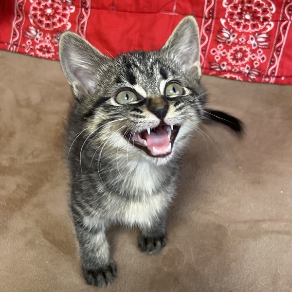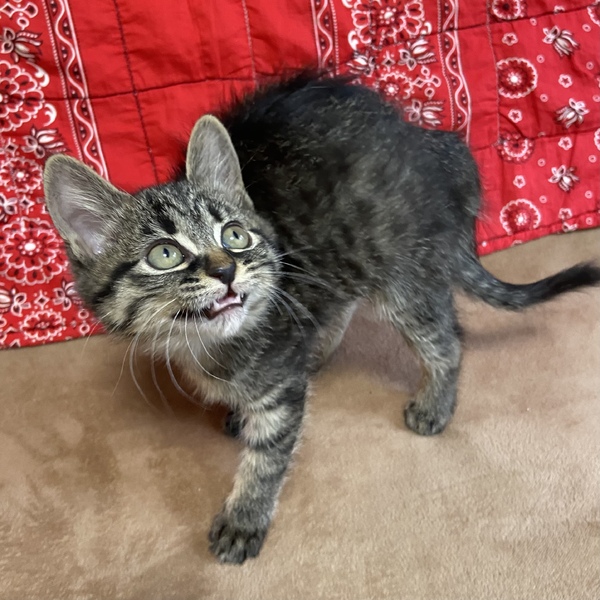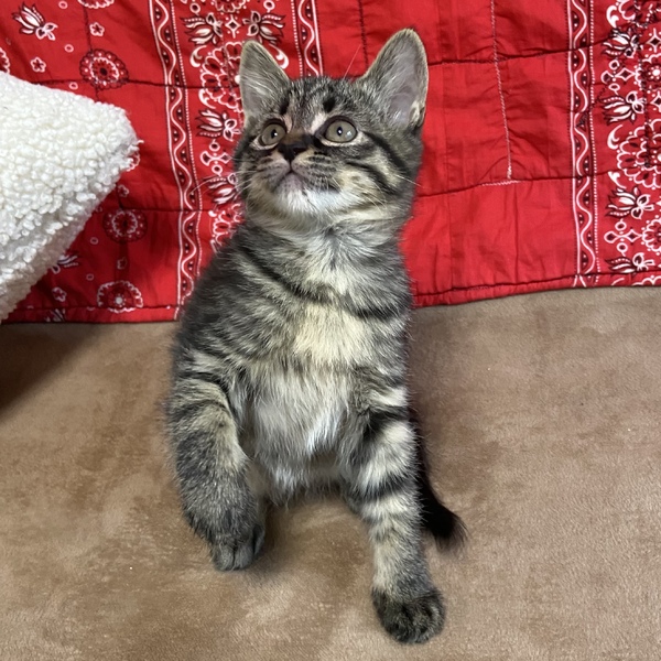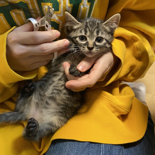 | 特徴(性格など) | 個性的でマイペースな性格が可愛いサラミちゃんです。 少し長毛気味のグレーの毛並みがおしゃれな女の子。 好奇心旺盛で人間はもちろん他の猫や犬にも物怖じしません。 多頭飼育は向いてそうな性格です。 他の兄妹とは違うことをしたがったり、目を見て喋るように鳴いたりと賢く表情豊かなユニークな子です。 遊び好きなので沢山遊んでいただけるおうち、お留守番が長すぎる・多すぎると子猫なので心配だと思います。 |