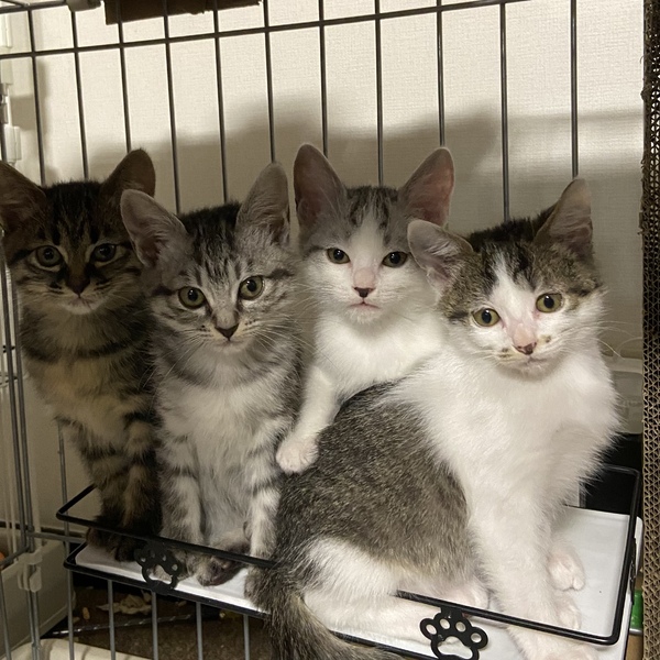 | 里親募集する理由 | 柏市愛護動物センターから引き出してきました4兄妹です。 模様も色々でお顔もみんな違いますが、同じお母さんから生まれた4匹でとても仲がいいです。 |