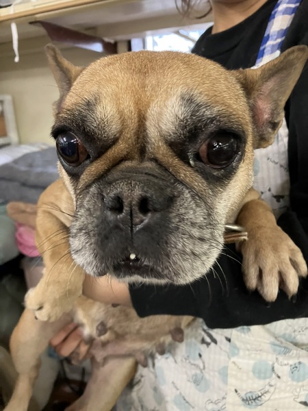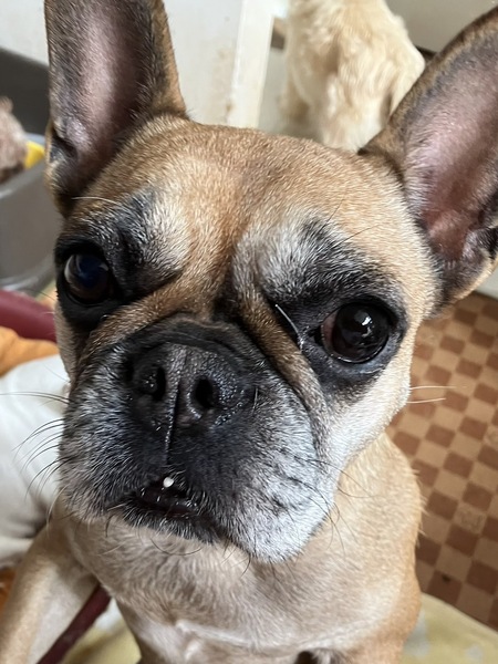| 特徴(性格など) | 和(のどか)ちゃん フレンチブルドッグ 体重9.7キロ むっちりボディの、和ちゃん。 前歯が一本チラリと見ているのがチャームポイント。 不思議そうな顔テレビドラマを見ている姿が可愛いです。 他のワンコとも仲良く遊べます。 普段は穏やかで遊ぶ時は、元気に遊ぶ、とても可愛い女の子です。 |