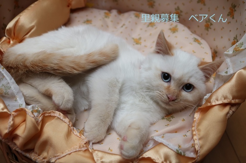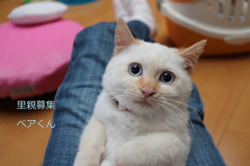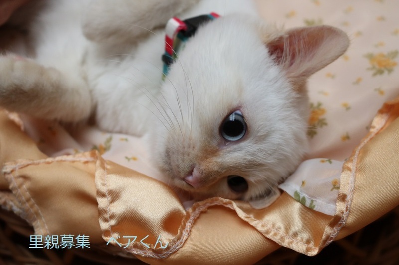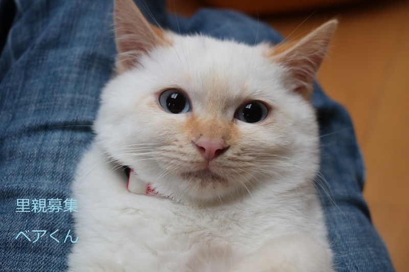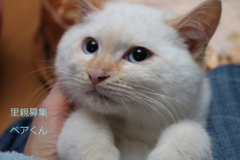 | 特徴(性格など) | シャム系子猫、男の子、仮名:ベアくん 推定生後3ヵ月半くらい、体重1.4kg(12/17現在)、 健康診断済み、駆虫済み(レボリューション12/8)、 血液検査-エイズ・白血病-共に陰性(12/17)、 初回三種混合ワクチン接種(12/17)、 トイレしつけ済み モコモコまん丸なお顔のベアくん、おっとりして可愛いです。 兄弟のスノウくんと元気に遊んでいます。猫が好きです。 2023年1/12 三種混合ワクチン追加接種済み。 |
