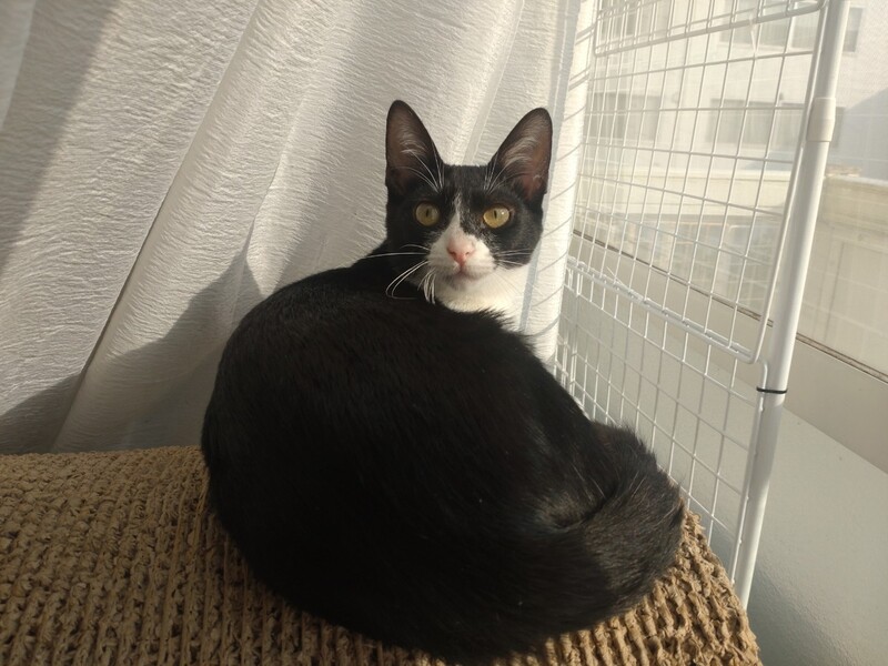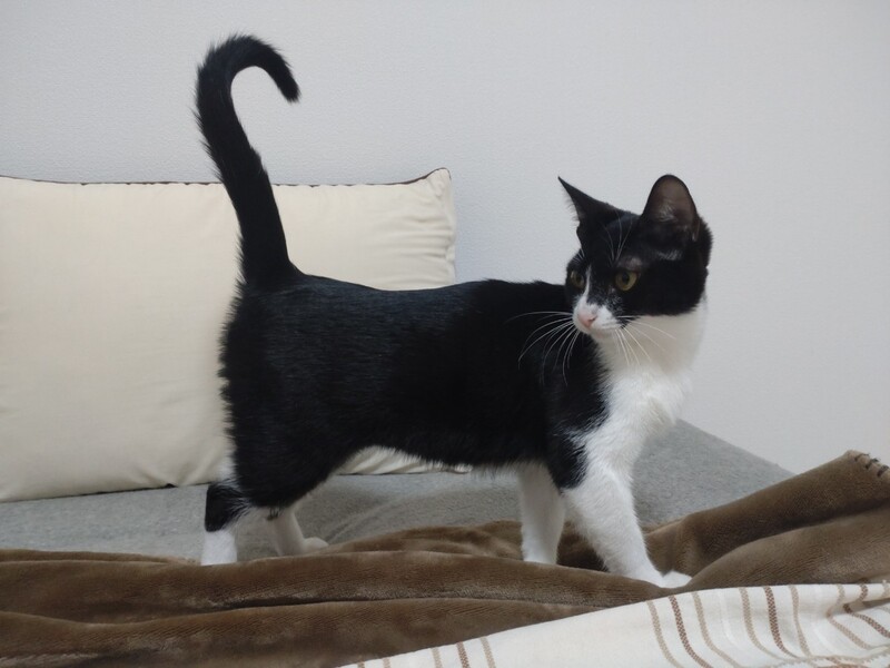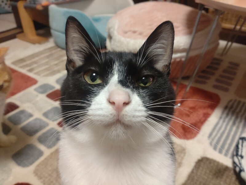 | 特徴(性格など) | 2022.3.31生まれ(推定) 毛色:白黒 ピンクのお鼻がかわいい格さん。 ちょっぴりビビリな男の子ですが、 慣れればグルグルゴロゴロ爆音で、甘えん坊全開♡ オモチャで遊ぶよりも、お膝を独り占めして一緒にまったり過ごしたいタイプ☆ かまって欲しい時は、ちょっと低めの声で一生懸命鳴いてアピールしてくれます♪ |